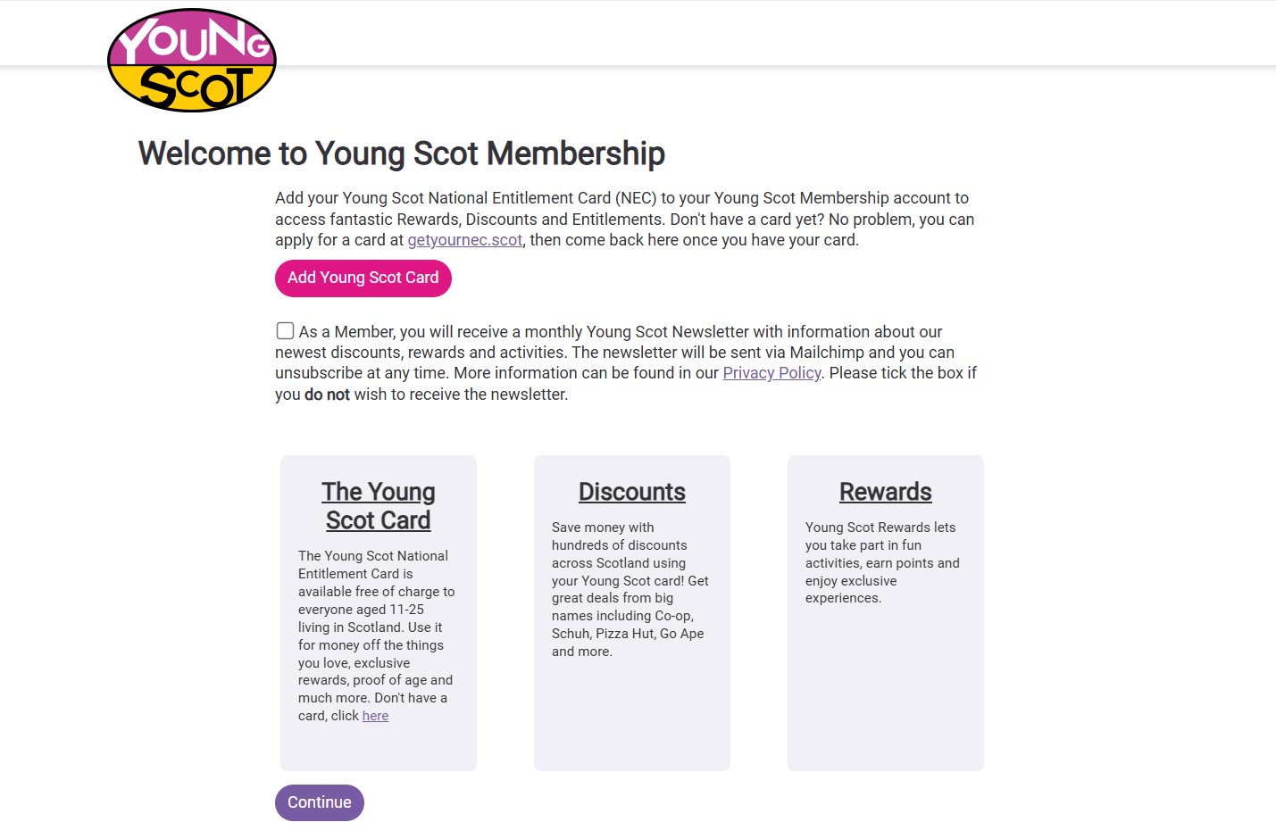 Don’t have a Young Scot NEC? You can get one online at getyournec.scot. You can find out more information about the applications process on the getyournec.scot website.